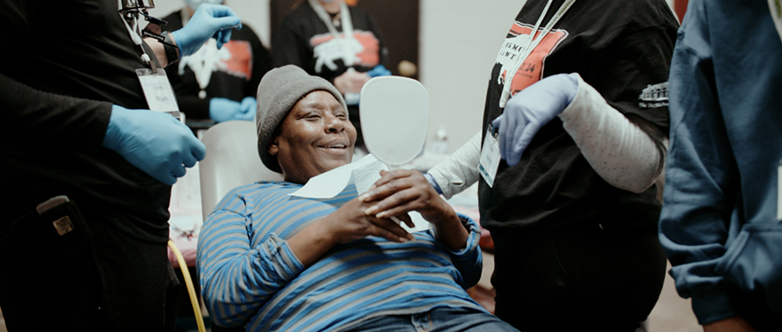 “Some of the patients at OkMOM had no teeth before or had to have all of their teeth extracted,” Wilguess explains. “They would be nervous at the beginning of their appointments. Many would speak or laugh with their hand over their mouth because they were embarrassed by their teeth.”