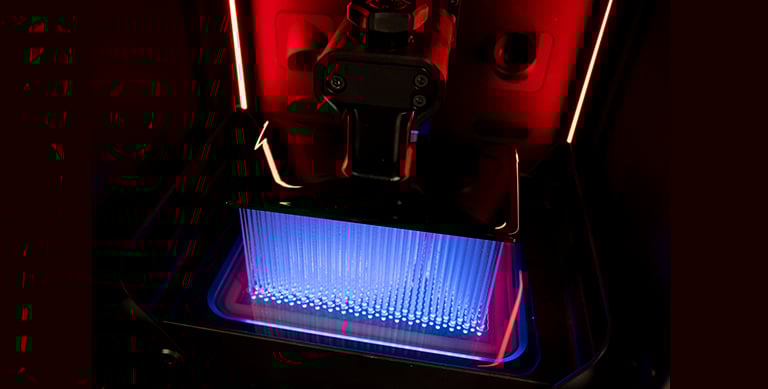 Digital Light Processing 3D printing uses a digital projector to cure photopolymer resins, resulting in repeatable high accurate parts with excellent resolution and consistent quality. DLP 3D printing has higher irradiance than LCD and similar resin, printing parts with better mechanical properties, using the same material and requiring fewer supports, even when printing overhangs, bridges, islands and large cross-sections (bulky parts).
