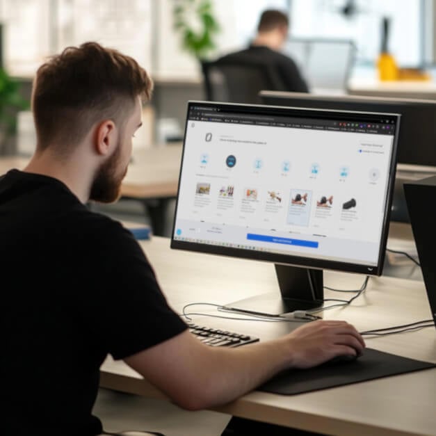 Engineer using computer to order 3d printed parts from RapidQuotes | Stratasys Direct